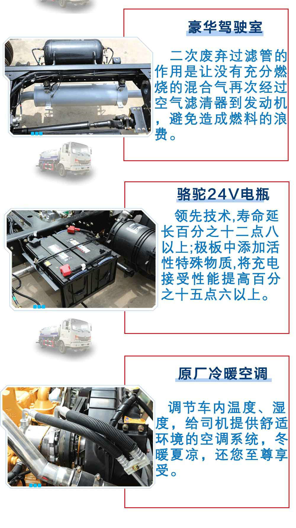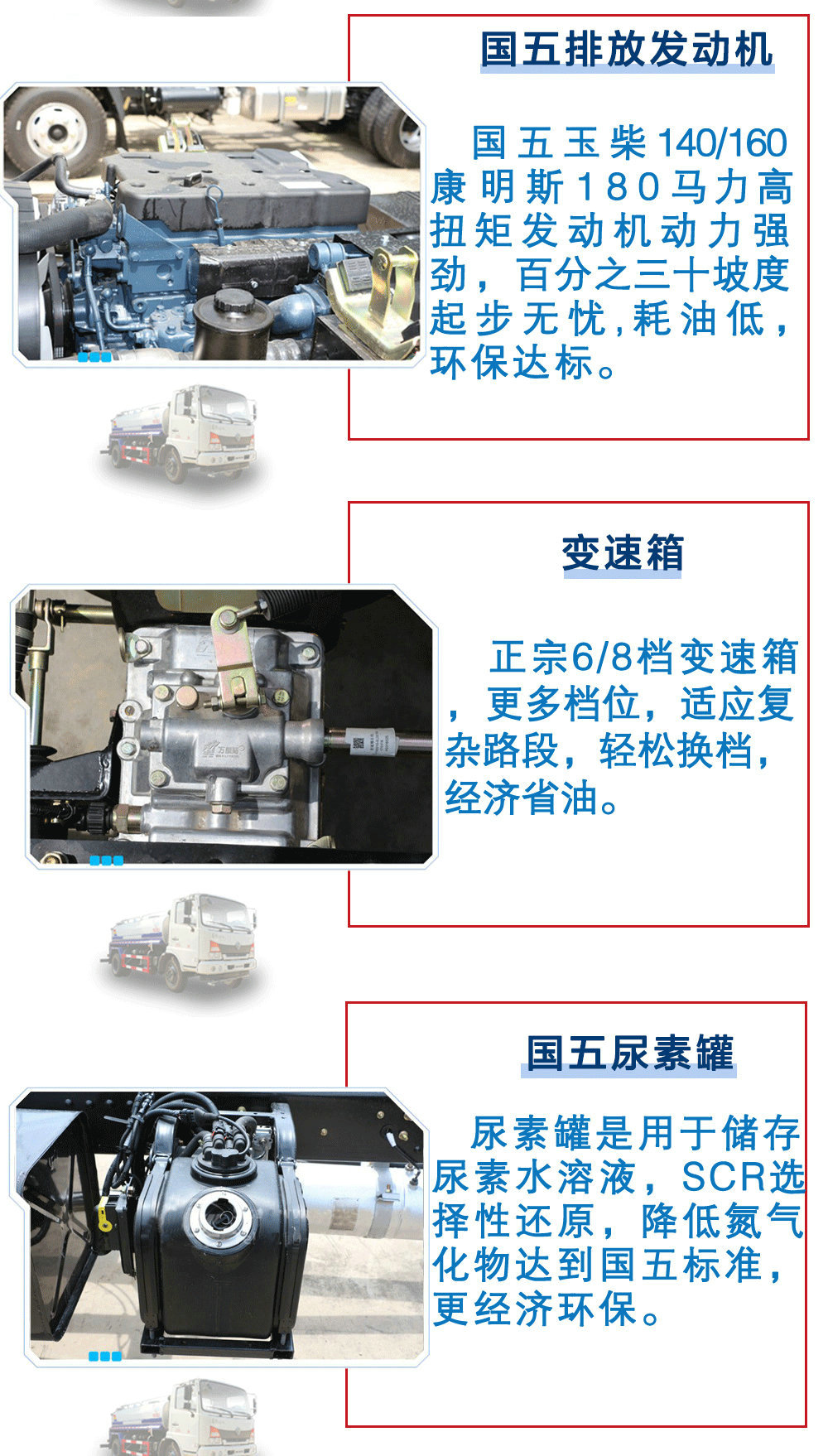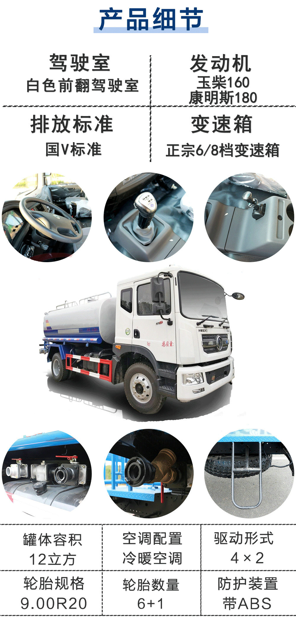 其他 | 1.罐體有效容積:10.39立方米,罐體外形尺寸(長×長軸×短軸)/軸距的對應(yīng)關(guān)系為(mm):(5000×2250×1350)/4700;(5000×2250×1350)/4500;(4600×2300×1450)/4200;(4600×2300×1450)/3950;整車長/前懸/軸距/軸距的對應(yīng)關(guān)系為(mm):8600/1445/4700/2455;8400/1250/4700/2450;8400/1445/4500/2455;8200/1250/4500/2450;8100/1445/4200/2455;7900/1250/4200/2450;7850/1445/3950/2455;7650/1250/3950/2450。2、軸距變化引起的質(zhì)量變化在3%以內(nèi),可忽略不計。3、側(cè)防護及后下部防護裝置均采用Q235A材質(zhì),均采用焊接連接,后下部防護尺寸:150×50(mm),離地面高度510mm。4、ABS生產(chǎn)廠家;東科克諾爾商用車制動系統(tǒng)(十堰)有限公司,型號:3631010-C2000。5、隨底盤選裝駕駛室。6、專用裝置:罐體,主要用于灑水及園林綠化。 |