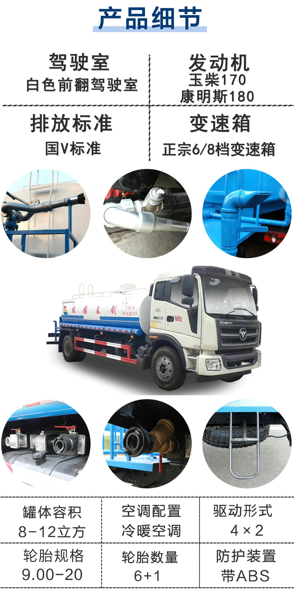 | 其他 | 1. 罐體有效容積為:9.33立方米.2.帶后操作平臺(tái)時(shí).整車長(zhǎng)度/前懸/后懸/軸距/罐體外形尺寸(長(zhǎng)×長(zhǎng)軸×短軸)的對(duì)應(yīng)關(guān)系為(mm):9100,8350/1350/2500/5250,4500/5200×2000×1300,4500×2100×1400.3. 選裝不帶后操作平臺(tái)時(shí), 整車長(zhǎng)度/前懸/后懸/軸距/罐體外形尺寸(長(zhǎng)×長(zhǎng)軸×短軸)的對(duì)應(yīng)關(guān)系為(mm) :8400,7650/1350/1800/5250,4500/5200×2000×1300, 4500×2100×1400.4.裝后操作平臺(tái)且選裝噴霧機(jī)組時(shí),整車長(zhǎng)度/前懸/后懸/軸距/罐體外形尺寸(長(zhǎng)×長(zhǎng)軸×短軸)的對(duì)應(yīng)關(guān)系為(mm) : 9100,8350/1350/2500/5250,4500/4800×2000×1300,4100×2150×1400.5.防護(hù)材料:Q235A碳鋼,連接方式:左右側(cè)面及后下部防護(hù)均采用焊接連接,后下部防護(hù)斷面尺寸(mm):150×50,后下部防護(hù)離地高度(mm):500.6.車輛顏色、文字噴涂位置及局部細(xì)節(jié)可變化.7.ABS型號(hào)為CM4XL-4S/4K(4S/4M),生產(chǎn)廠家為廣州科密汽車電子控制技術(shù)股份有限公司.8.該車可選用9.00R20 16PR、10R22.5 16PR規(guī)格輪胎。 | ||