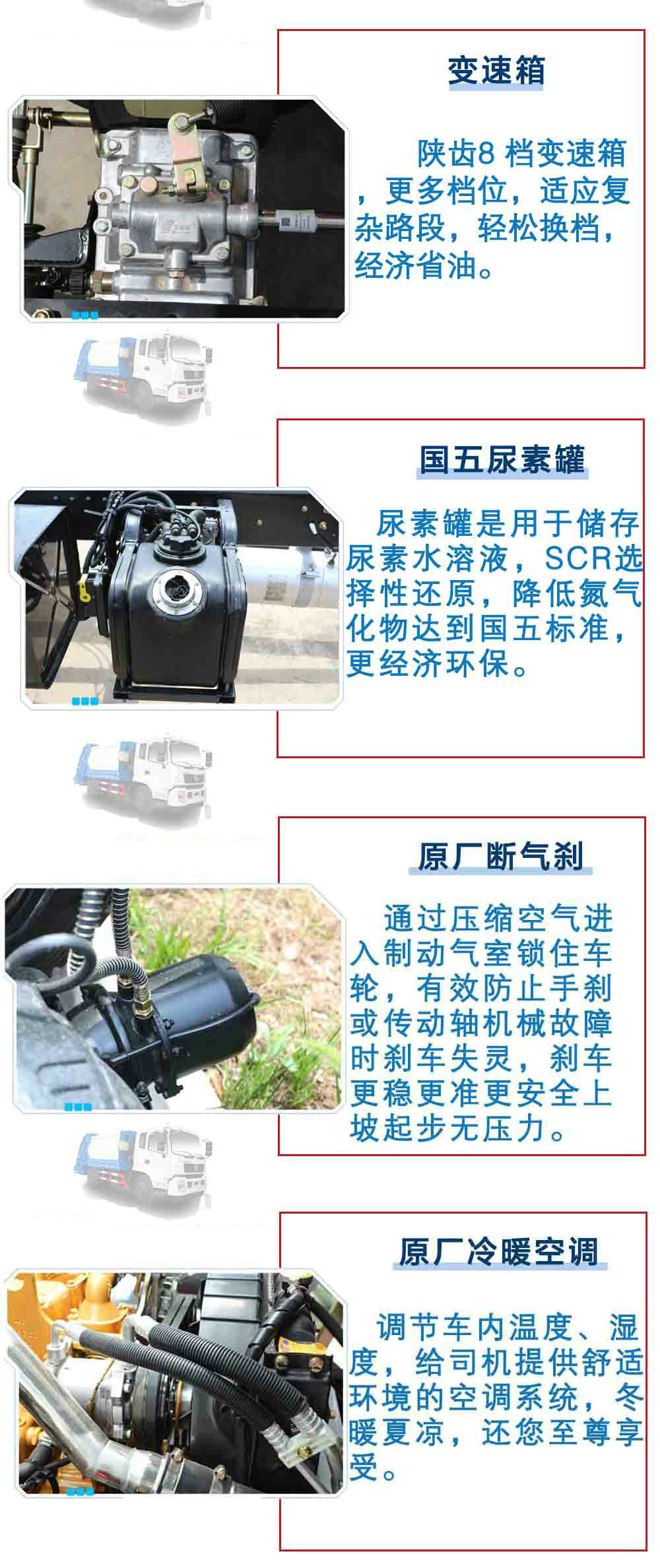 | 其他 | 1,隨底盤選裝駕駛室。2,該車安裝擺臂,帶翻桶,大落地斗,小落地斗機構時,整車長/前懸/軸距/后懸對應關系為(mm):8710/1440/4500/2770,8510/1250/4500/2760,8160/1440/3950/2770,7960/1250/3950/2760;該車當安裝不帶翻桶機構時,整車長/軸距/后懸對應關系為(mm):8510/1440/4500/2570,8310/1250/4500/2560,7960/1440/3950/2570,7760/1250/3950/2560。3,允許局部結構外觀有變化,車輛顏色可選,文字噴涂位置可變化。4,防護材料:Q235A碳鋼,連接方式:左右側面防護與車輛箱體底面采用焊接連接,后部填充器與后防護干涉,故后部防護豁免。5,ABS的型號:ABS-E 4S/4M,生產廠家:威伯科汽車控制系統(tǒng)(中國)有限公司。6,發(fā)動機與油耗值對應關系為(L/100km):ISD180 50/26.8,YC6JA180-50/27.1,EQH180-52/26.2,ISB210 50/26.5,ISD190 50/26.0,YC4E160-56/25.8,YC4S150-50/25.7。7、專用裝置:箱體,主要用于城鎮(zhèn)環(huán)衛(wèi)垃圾的運輸。 | ||