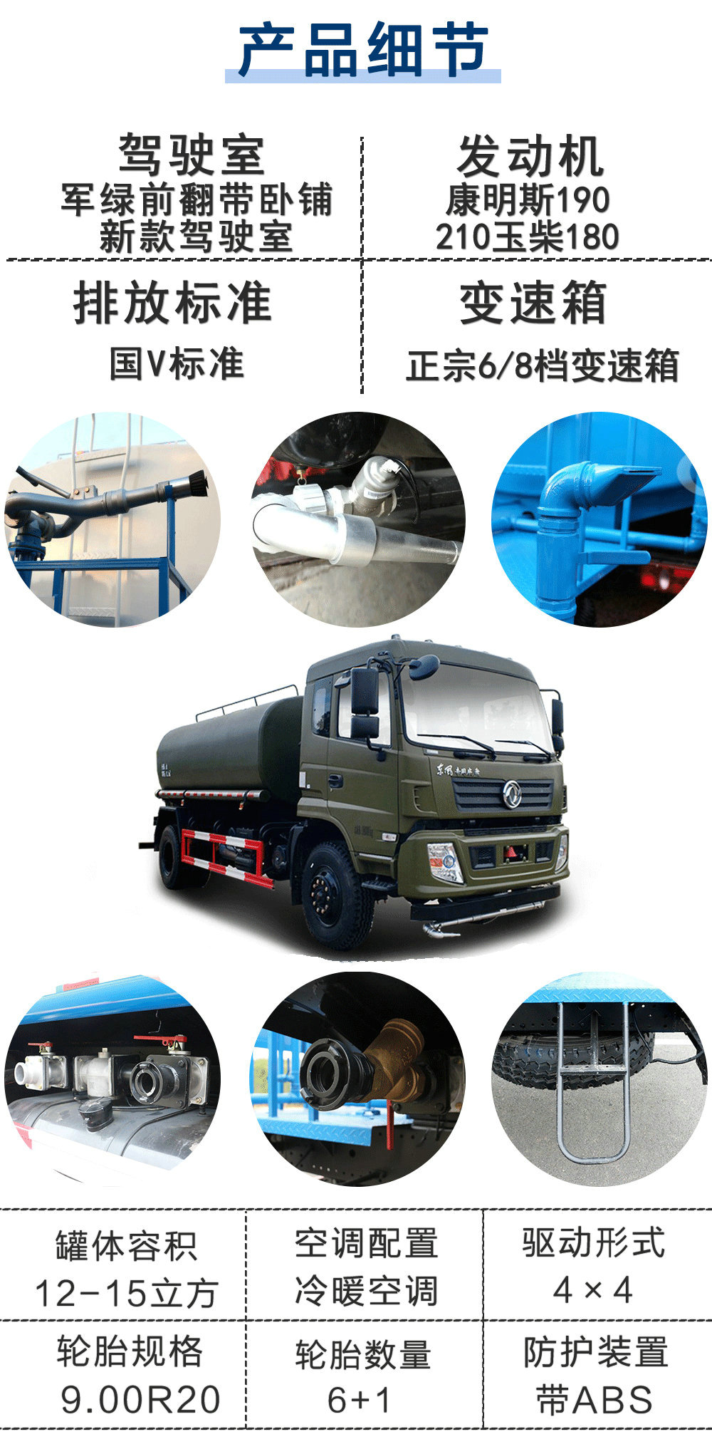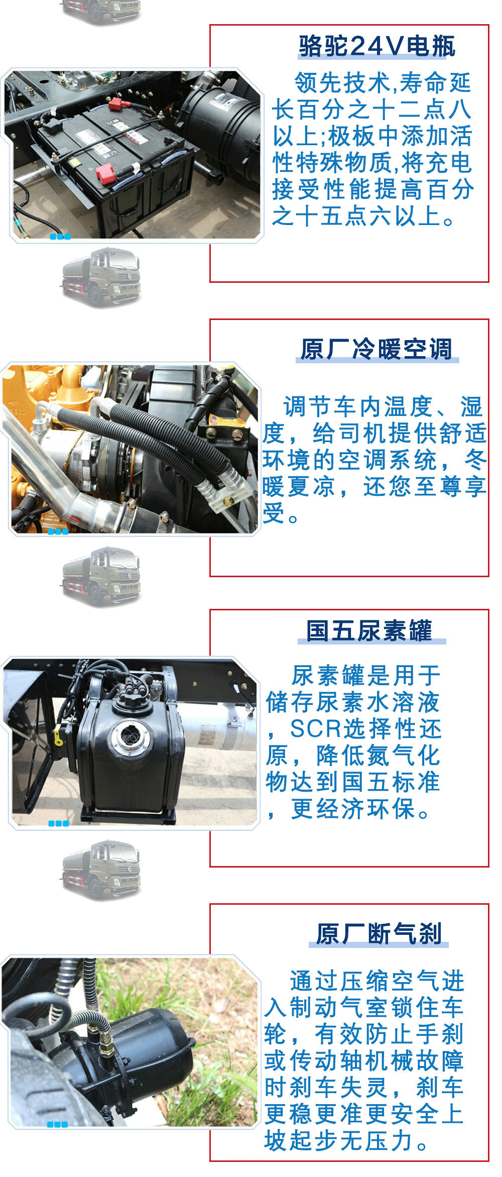 | 其他 | 罐體有效容積11.1立方米.罐體外形尺寸(長×寬×高) (mm): 4350×2460×1550; 4000×2460×1550。隨底盤選裝駕駛室,罐體顏色可變化,文字噴涂位置可變化。側(cè)防護(hù)和后防護(hù)均用螺栓連接,防護(hù)材料:Q235B, 后部防護(hù)裝置的主要尺寸參數(shù)(寬×高):130×50(mm),離地高度:500(mm). ABS型號為3631010-C2000,生產(chǎn)廠家為東科克諾爾商用車制動系統(tǒng)(十堰)公司.僅采用10.00R20 18PR,10.00-20 18PR輪胎.選裝外觀樣式。 | ||