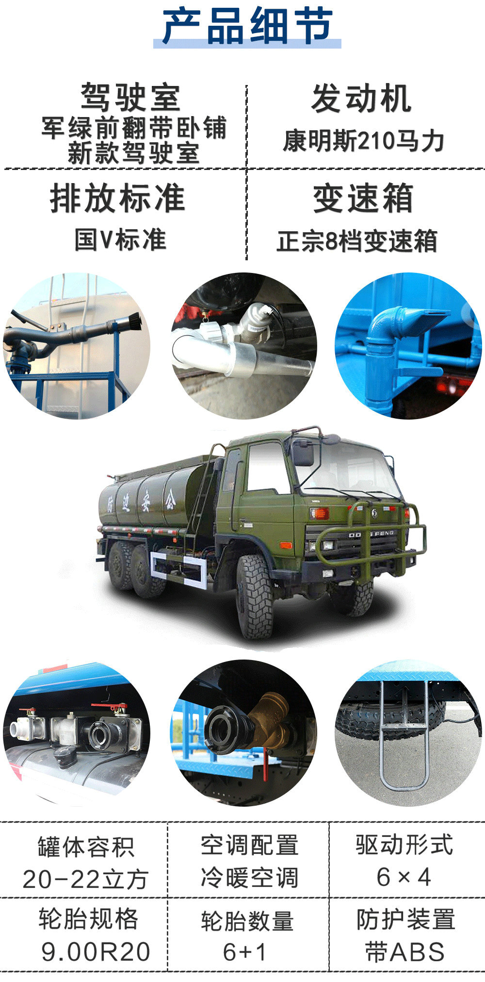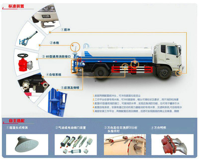 | 其他 | 該車主要用于城鄉(xiāng)園林綠化灑水,噴藥等;主要裝置為水罐及泵.罐體有效容積12.1立方米.罐體外形尺寸(長×寬×高) (mm): 4000×2400×1550.防護材料Q235B,側、后防護焊接連接,后部防護截面尺寸(寬×高)(mm) 50×100;離地高為530mm.ABS型號為3631010-C2000,生產廠家為東科克諾爾商用車制動系統(tǒng)(十堰)公司.運輸介質:水,密度:1000千克/立方米.選裝罐體后部工具箱.選裝外觀樣式. | ||