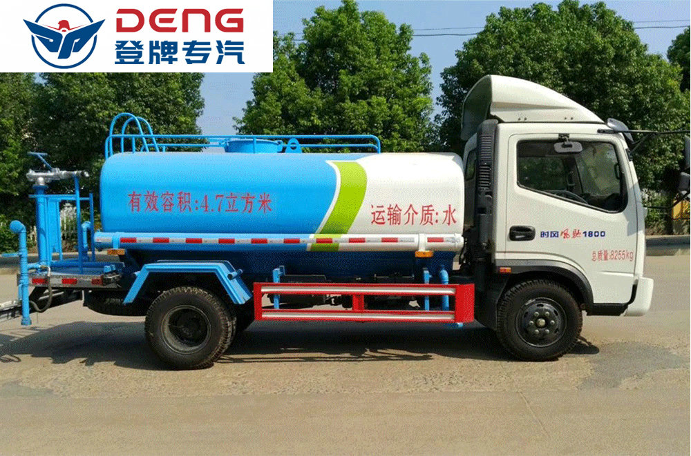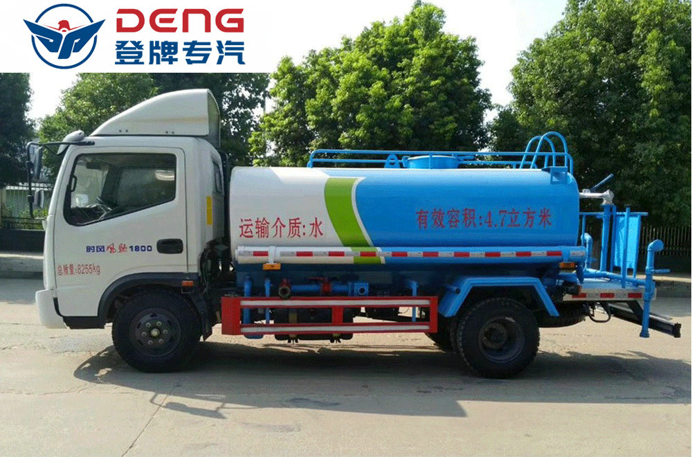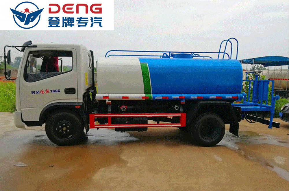 上裝配置:罐體有效容積5立方,罐體采用國(guó)標(biāo)Q235碳鋼,罐體厚度4mm,自吸自排水泵,帶前沖裝置,后灑裝置,左右側(cè)噴裝置,尾部帶有安全操作平臺(tái),帶消防接口,自流口,兩根輸水管,尾部綠化高炮,綠化高炮可調(diào)節(jié)直沖,大雨,中雨,毛毛雨霧,可以連續(xù)調(diào)節(jié),360度旋轉(zhuǎn);