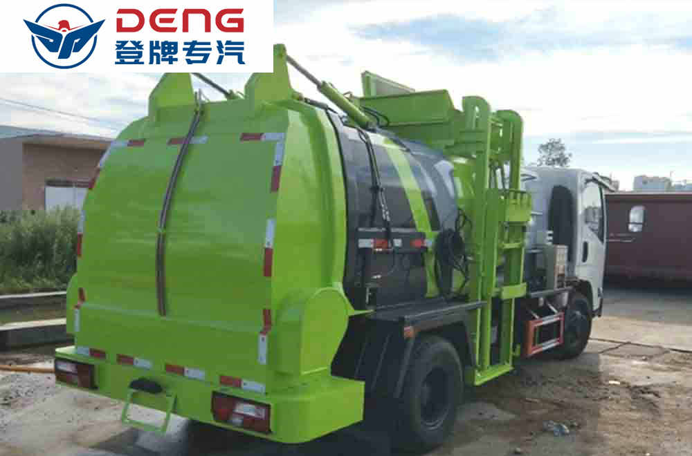 餐廚垃圾車又稱餐余垃圾車余廚余垃圾車或者泔水車,餐廚垃圾車是垃圾車中的一種,是用于收集和運輸生活垃圾、食品垃圾(泔水)及城市淤泥的專用車輛。 餐廚垃圾車標準配置:圓形碳鋼罐體,罐體厚度5mm,拉桿提升機帶上蓋聯(lián)動;后蓋液壓開啟;罐體舉升自卸。選裝內(nèi)軒推鏟卸料,帶渣液分離功能。餐廚垃圾車可分罐式和廂式。 餐廚垃圾車特點:改裝部分具有裝、卸垃圾自動化程度高、工作可靠、密封性好、裝載容積大、操作簡便、作業(yè)過程密閉,無污水泄露和異味的散發(fā),環(huán)保性好等特點??膳溲b載不同規(guī)格的標準垃圾桶,具有廣泛的適用性。餐廚垃圾車高效、清潔的是垃圾收、運專用車輛。