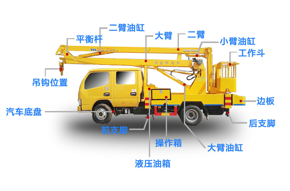 江鈴12米高空作業(yè)車,采用江鈴工程黃駕駛室,軸距3360mm,江鈴115馬力國五發(fā)動機,油剎,五檔變速箱,7.00R16鋼絲胎,帶ABS.加裝空調。作業(yè)高度12米,液壓360度全回轉,2節(jié)折疊臂,單液壓舉升缸,帶雙向平衡閥,電控操作舉升臂,四支液壓油缸可調式支腿帶雙向液壓鎖(支腿操作為手動操作,可單獨控制)、最大作業(yè)幅度5.2米、最大起吊高度6.5米。