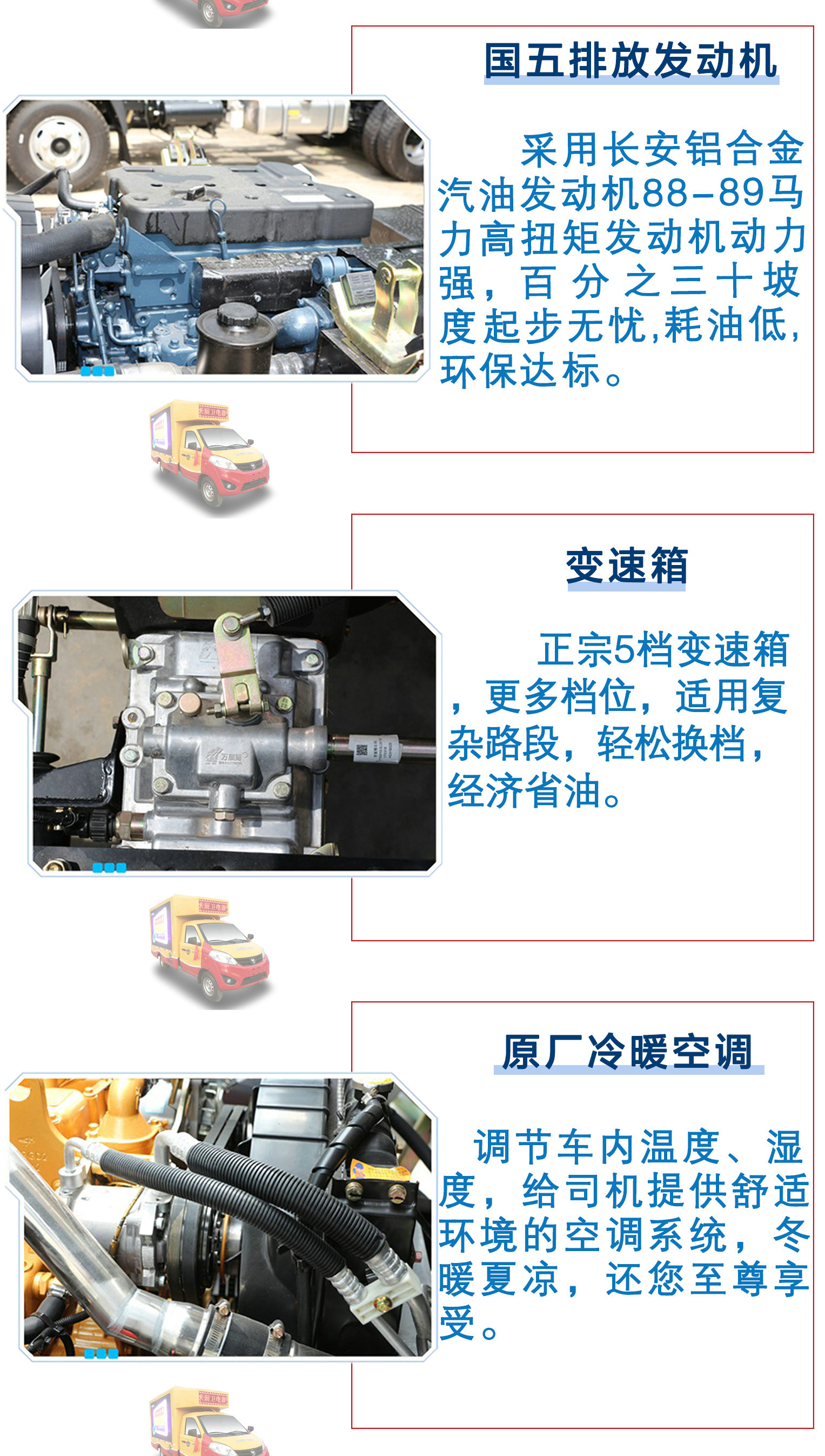 其他 | 貨箱頂部封閉不可開啟.選裝不帶側(cè)開門貨廂形式.選裝新前圍.選裝前格柵顏色和霧燈底座顏色.發(fā)動(dòng)機(jī)LJ469Q-1AE9對(duì)應(yīng)油耗值為8.0,發(fā)動(dòng)機(jī)4W12M1對(duì)應(yīng)油耗值為7.6,發(fā)動(dòng)機(jī)DAM15R對(duì)應(yīng)油耗值為8.9.選裝同等功率制冷機(jī)組,可選裝ABS,ABS型號(hào)為YF9,生產(chǎn)企業(yè)為武漢元豐汽車電控系統(tǒng)有限公司. |