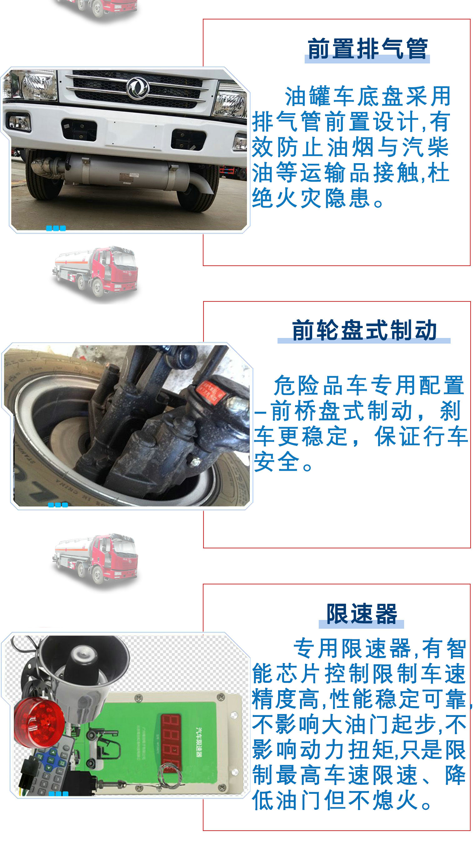 其他 | 該車適用于危險品運輸,運輸介質(zhì):汽油,介質(zhì)密度為:0.7噸/立方米,類項號:3;罐體有效容積:24.1立方米, 罐體外形尺寸(長×長軸×短軸)(mm)為:7700×2480×1880。防護材料:Q235A碳鋼,連接方式:左右側(cè)面及后下部防護均采用焊接連接,后部防護斷面尺寸(mm):135×50,后部防護離地高度(mm):520。僅采用底盤子午線輪胎和帶ABS的底盤; 該車前輪安裝盤式制動器,前置排氣管,裝配限速裝置,限速79km/h。安裝帶有衛(wèi)星定位功能的行駛記錄儀。ABS生產(chǎn)廠家/型號:長春科密汽車制動 |