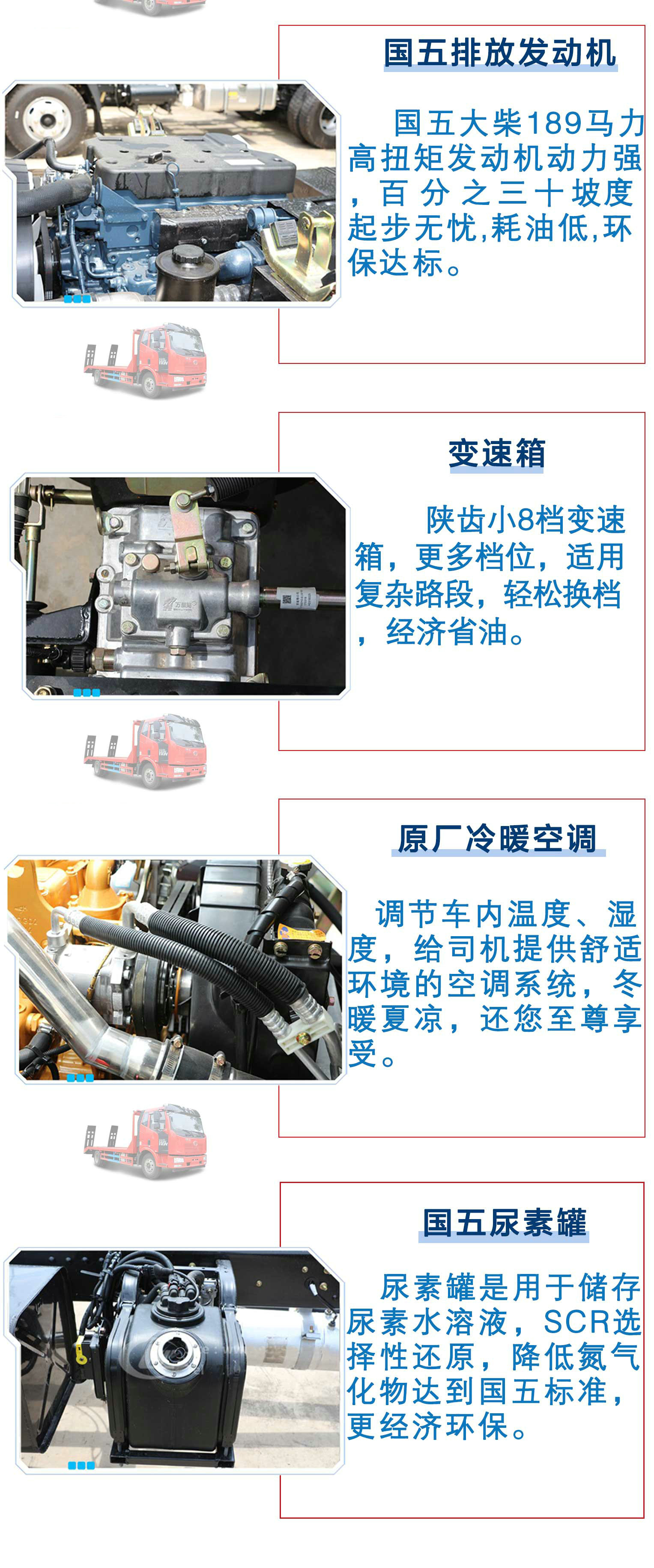 | 其他 | 該車僅用于運送不可拆解物體。防護材料:Q235A碳鋼,連接方式:左右側(cè)面與平板縱梁采用焊接連接, 后部防護與車架采用焊接連接,后部防護斷面尺寸(mm):110×50,后部防護離地高度(mm):400,該車安裝帶有衛(wèi)星定位功能的行駛記錄儀。該車選用發(fā)動機型號BF6M2012-20E51, BF6M2012-18E5,BF4M2012-16E5,CA4DK1-18E51,CA4DK1-22E51對應(yīng)的油耗值分別為(L/100km):25.14;24.83;24.86,23.62,23.62。ABS系統(tǒng)生產(chǎn)廠 | ||