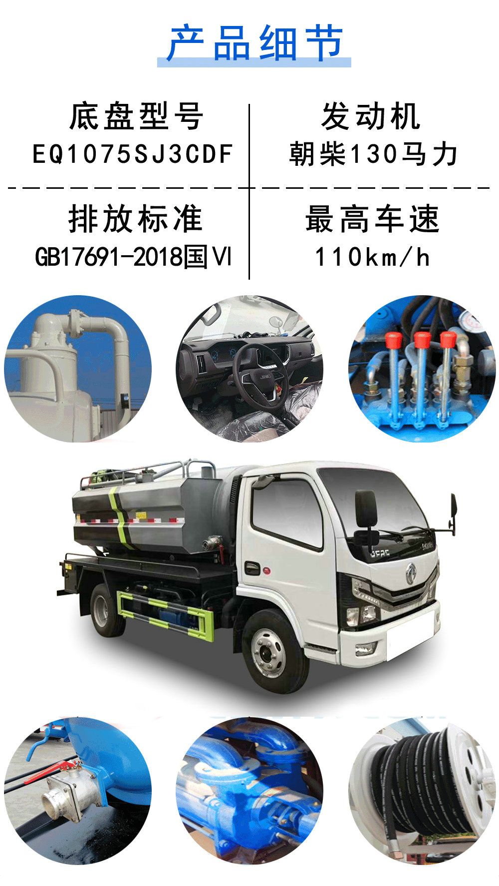 其他 | 該車裝有取力器,真空泵,高壓水泵等;罐體總長(zhǎng)(mm):3600,其中水罐前下部用于安裝高壓泵,水罐罐體有效容積:1.92立方米,罐體外形尺寸(長(zhǎng)×直徑)(mm):1800×1200;吸污罐罐體有效容積:1.92立方米,罐體外形尺寸(長(zhǎng)×直徑)(mm):1800×1200;水罐和吸污罐為兩個(gè)獨(dú)立罐體,兩罐不能同時(shí)滿載;防護(hù)材料:Q235A碳鋼,連接方式:左右側(cè)面防護(hù)以及后部防護(hù)采用焊接連接,后防護(hù)斷面尺寸(mm):100×50,后部防護(hù)離地高度(mm):350;整車長(zhǎng)/軸距/后懸對(duì)應(yīng)關(guān)系為(mm):5995/3308/1632,5915/2950/1910,5510/2700/1755; 隨底盤選裝駕駛室,ABS型號(hào)/廠家:ABS/ASR-12V-4S/4M/襄陽東風(fēng)隆誠(chéng)機(jī)械有限責(zé)任公司。選裝清洗罐體和吸污罐體功能高度集成的圖片。 |
