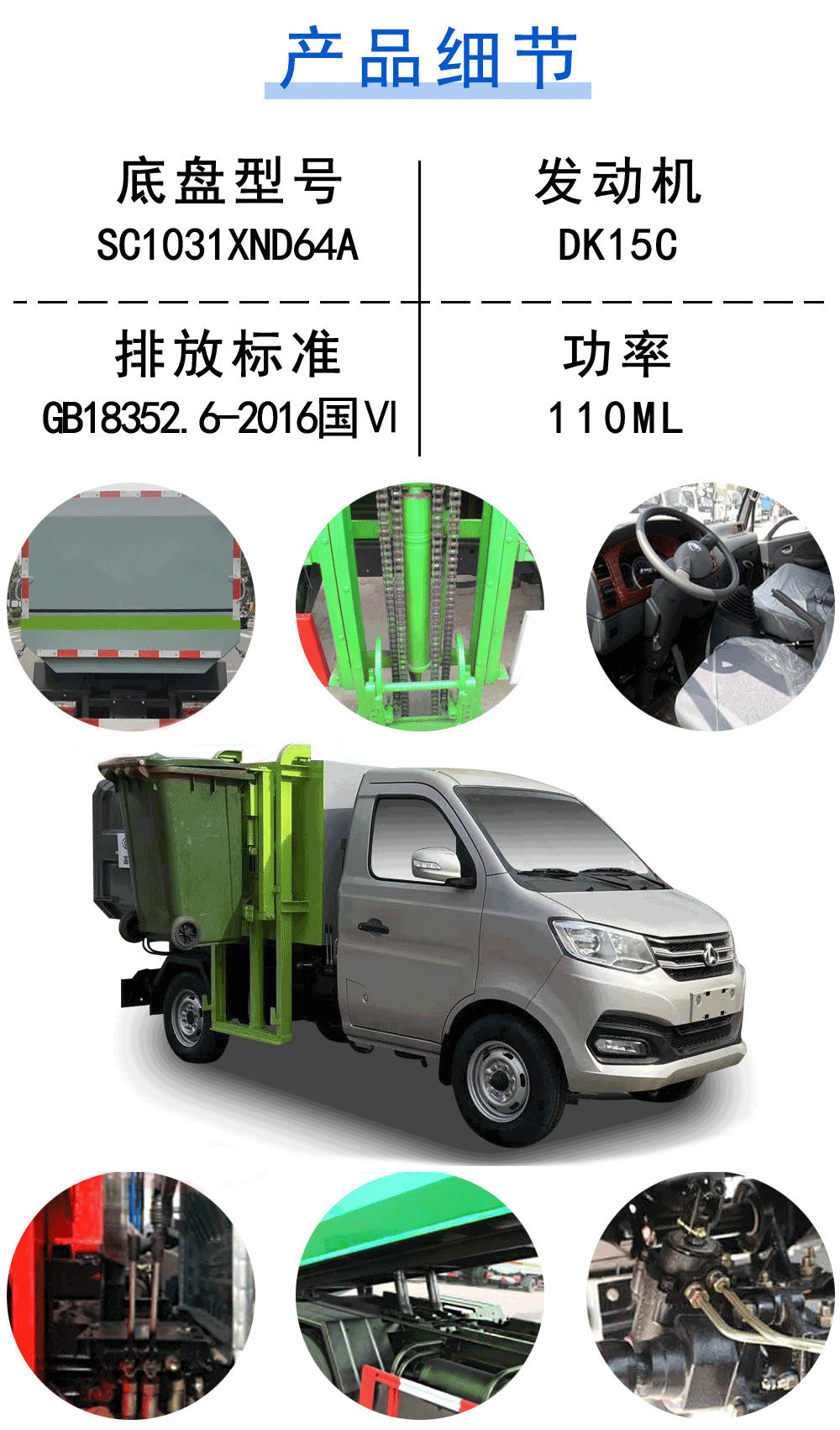 | 其他 | 1、專用裝置:箱體及提升機(jī),實(shí)現(xiàn)對垃圾的裝載及卸料作業(yè)功能;2、ABS系統(tǒng)控制器型號:YF8,生產(chǎn)企業(yè)/控制方式:武漢元豐汽車電控系統(tǒng)有限公司/四通道式;3、發(fā)動機(jī)型號/油耗值(L/100Km)為:DK15C/6.5;4、隨底盤選裝前霧燈,導(dǎo)流罩,輪輞樣式;選裝箱體樣式及提升機(jī)樣式 | ||