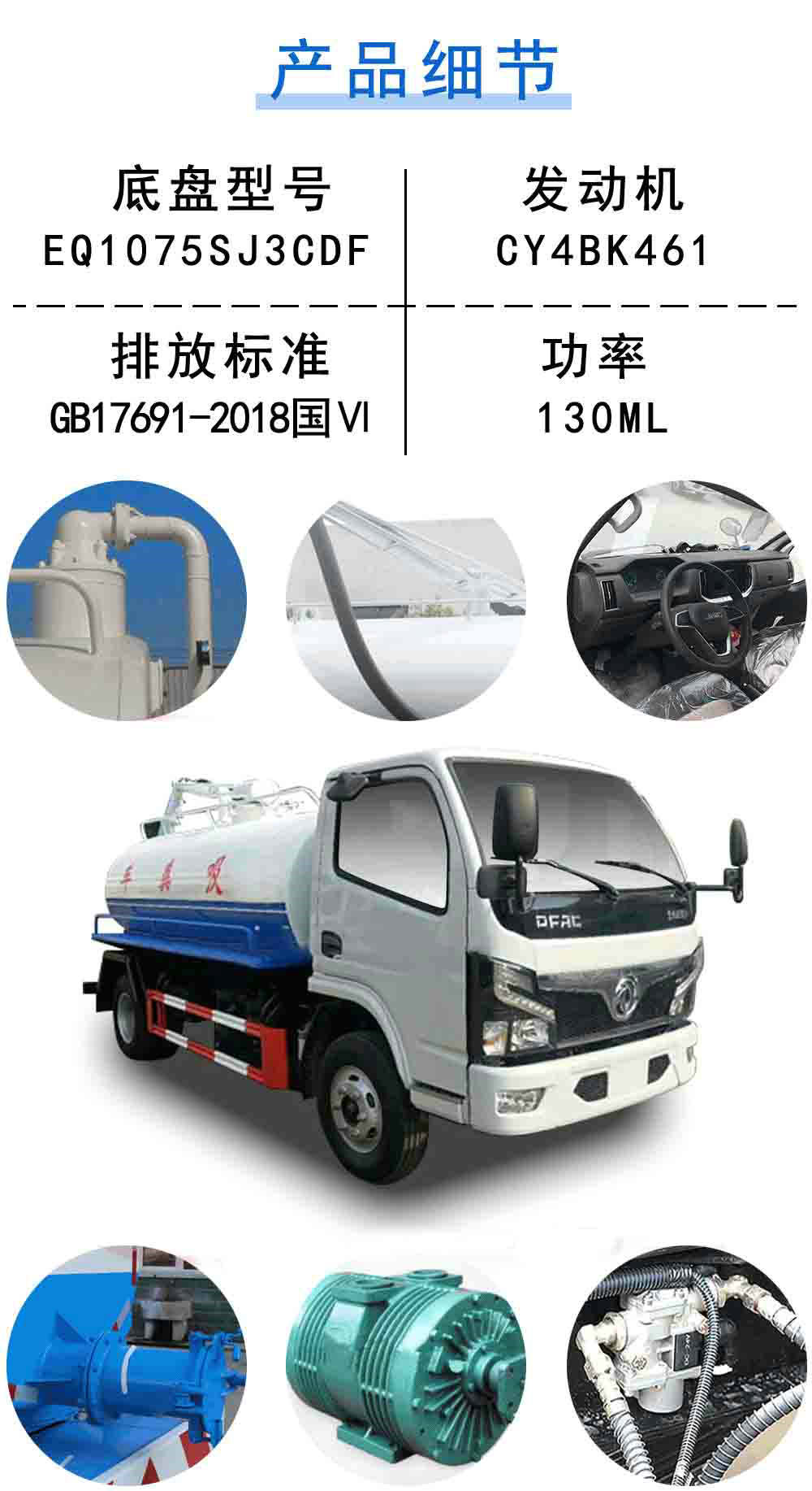 其他 | 1、該車僅選用3308mm軸距,罐體有效容積為4.63立方米,罐體尺寸為(mm):3500×1650×1200。2、防護(hù)材料:Q235B碳鋼,連接方式:左右側(cè)面及后下部防護(hù)均采用焊接連接,后部防護(hù)斷面尺寸(mm):120×50,后部防護(hù)離地高度(mm):430。3、ABS型號(hào)/廠家:ABS/ASR-12V-4S/4M/襄陽東風(fēng)隆誠機(jī)械有限責(zé)任公司。4、專用裝置:罐體,主要用于抽排運(yùn)水、糞便、油污、泥漿等各種流體。5、隨底盤選裝駕駛室。 |