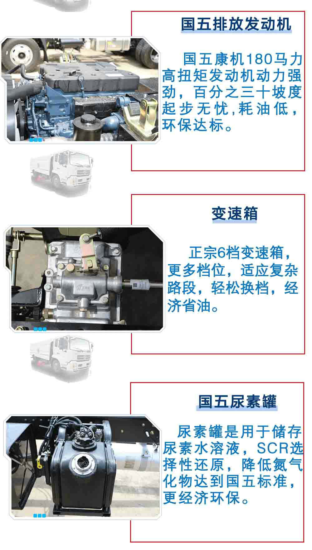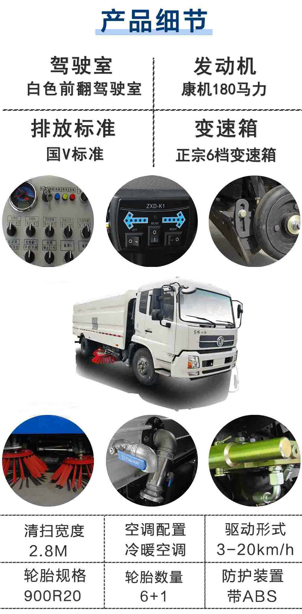其他 | 1,整車長度與軸距/后懸對應(yīng)關(guān)系為(mm):7930/4700/1800,7930/4500/2000,7630/4200/2000。2,防護(hù)材料:Q235A碳鋼,連接方式:左右側(cè)面防護(hù)豁免,后下部防護(hù)與副梁采用螺栓連接,后部防護(hù)斷面尺寸(mm):50×100,后部防護(hù)離地高度(mm):450。3,ABS型號:4460046440;生產(chǎn)廠:威伯科汽車控制系統(tǒng)(中國)有限公司;ABS型號3631010-C2000,生產(chǎn)廠:東科克諾爾商用車制動系統(tǒng)(十堰)有限公司。該車安裝具有衛(wèi)星定位功能的行駛記錄儀。4,文字噴涂位置和車輛顏色可變化。5,選裝吸塵盒和單個掃地刷裝置及側(cè)面和后部外形。 |