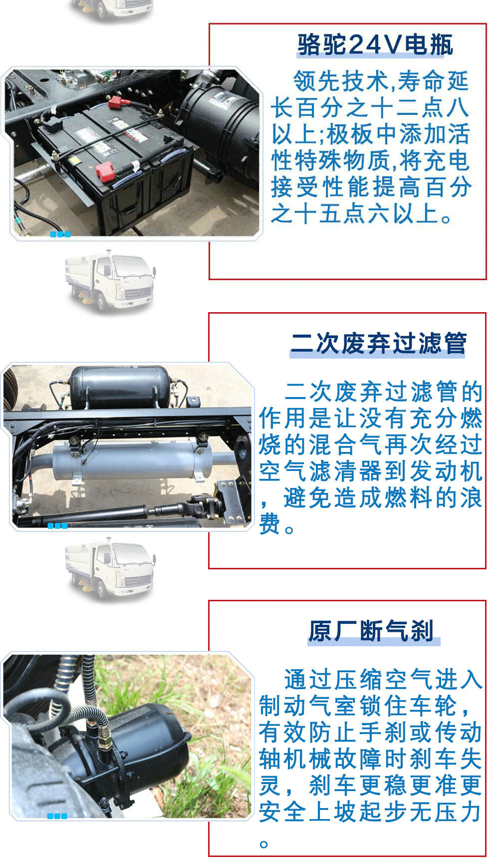 其他 | 隨底盤選裝駕駛室。防護材料:Q235A碳鋼,連接方式:左右側面防護裝置與專用裝置相干涉,故豁免,后下部防護與大梁螺栓連接,后部防護斷面尺寸(mm):100×50,后部防護離地高度(mm):440。此車長/軸距/前懸/后懸對應關系為(mm):5560/2800/1060/1700;5210/2600/1060/1550.ABS型號:CM4XL-4S/4K(4S/4M),ABS生產(chǎn)廠:廣州科密汽車電子控制技術股份有限公司。僅采用6.00-14LT 10PR,6.00-15LT 10PR規(guī)格輪胎。 |