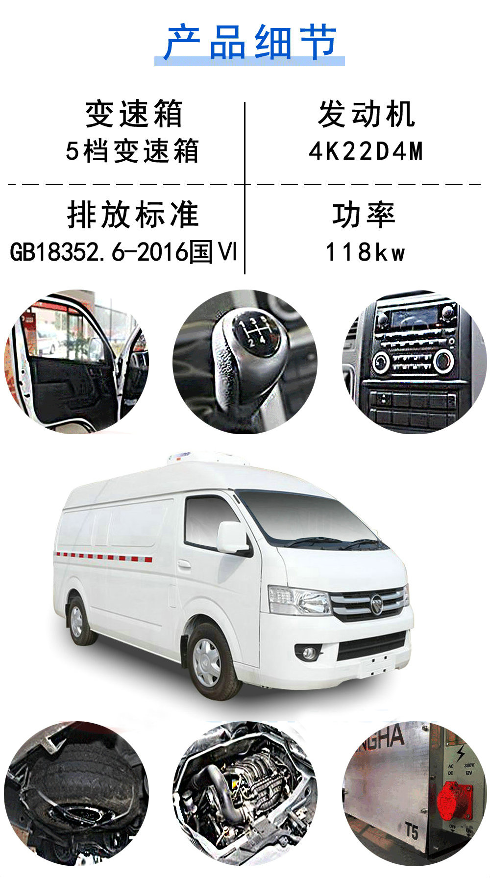 | 其他 | 1.ABS系統(tǒng)控制器型號/生產(chǎn)企業(yè):YF8/武漢元豐汽車電控系統(tǒng)有限公司.2.選用發(fā)動機最大凈功率為110kW.3. 選裝前霧燈、輪罩、鋁輪、不同顏色鋼輪、后踏步保險杠(U型)、半盲窗. 選裝內(nèi)置式制冷機組時整車高度不變,選裝三豐制冷機組時整車高度為2400mm,選裝美國冷王制冷機組時整車高度為2440mm,選裝凱雪制冷機組時整車高度為2440mm,選裝開利制冷機組時整車高度為2450mm,選裝開利CITIMAX制冷機組時整車高度為2420mm,選裝韓亞制冷機組時整車高度為2430mm,選裝信華泰機組時整車高度為2430mm,選裝信華泰TF機組時整車高度為2450mm,選裝凱達制冷機組時整車高度為2440mm,選裝愛斯制冷機組時整車高度為2500mm. | ||