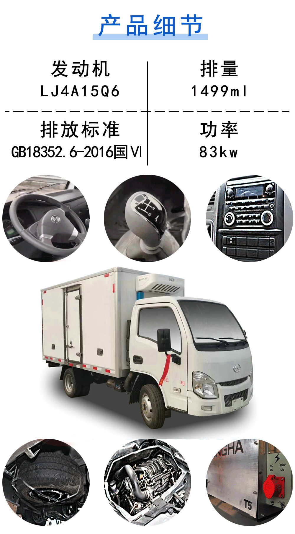 其他 | 1.ABS控制器型號(hào)/生產(chǎn)廠家:YF8/武漢元豐汽車電控系統(tǒng)有限公司;2.LJ4A15Q6凈功率為79kw,對(duì)應(yīng)油耗值為9.6L/100km;3.車廂頂部封閉不可開啟;4.車廂可選裝不開門或側(cè)開門,可選裝左或右側(cè)開門,不同外觀側(cè)門和后門;5.可選裝導(dǎo)流罩;6.選裝其他廠家功率相當(dāng)?shù)闹评錂C(jī)組,KV300英格索蘭(中國(guó))投資有限公司,K125勁達(dá)技術(shù)(河源)有限公司,MK358勁達(dá)技術(shù)(河源)有限公司;7.冷藏車類別:F類;8.隨底盤選裝駕駛室前圍面板,前圍格柵,后視鏡,前部燈具,前保險(xiǎn)杠外觀,擴(kuò)展輪輞外觀,擴(kuò)展輪眉,隨底盤選裝排半駕駛室;9.駕駛室左側(cè)車門選裝裝飾標(biāo)貼. |