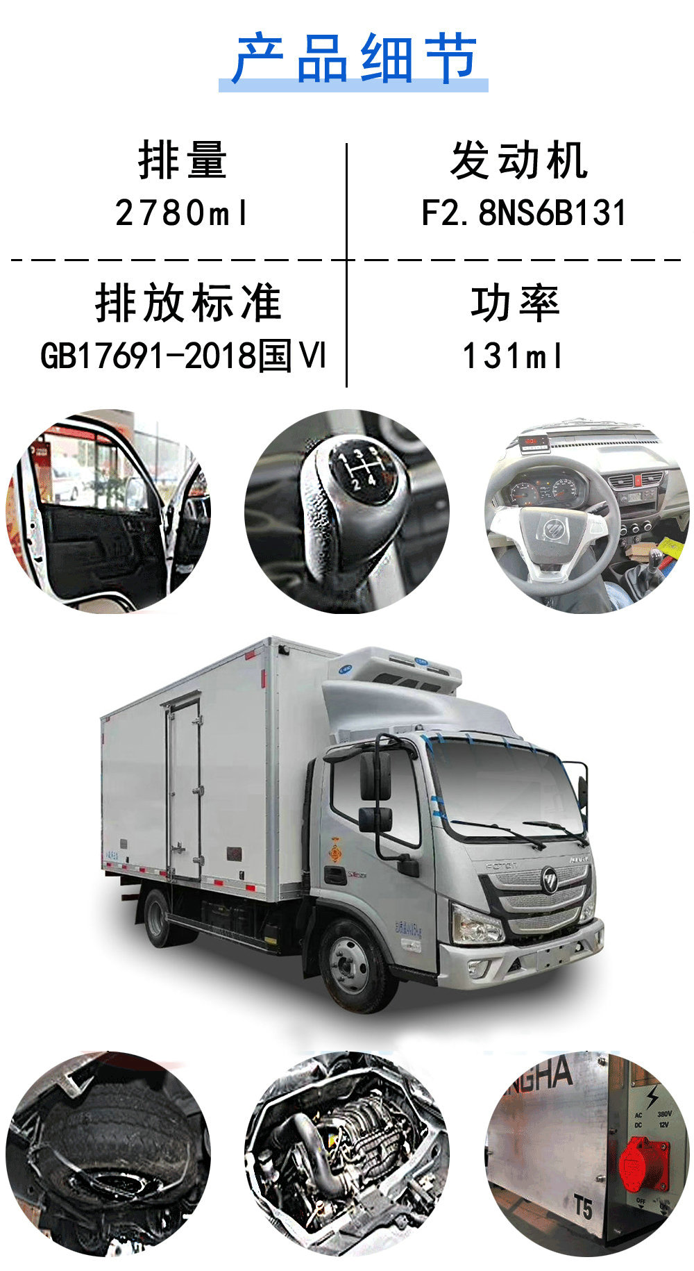 其他 | 1.選裝導(dǎo)流罩;選裝兩側(cè)單、雙、無(wú)側(cè)開門;選裝同等功率制冷機(jī)組,外觀形狀可不同.2.ABS型號(hào)及廠家對(duì)應(yīng)關(guān)系:液剎:ABS系統(tǒng)型號(hào):YF8;生產(chǎn)企業(yè):武漢元豐汽車電控系統(tǒng)有限公司.氣剎:ABS系統(tǒng)型號(hào):ABS-VI.E;生產(chǎn)企業(yè):廣州瑞立科密汽車電子股份有限公司.3.F2.8NS6B131、F2.8NS6B156發(fā)動(dòng)機(jī)最大凈功率分別為93kw、112kw.4.選裝前圍及前部燈具,前下視鏡為選裝件可不裝,選裝排半駕駛室,排半駕駛室對(duì)應(yīng)貨箱內(nèi)部長(zhǎng)度為3700mm,單排駕駛室對(duì)應(yīng)貨箱內(nèi)部長(zhǎng)度為4080mm.5.側(cè)防護(hù)的連接方式是與貨箱橫梁螺栓連接,側(cè)防護(hù)材料為冷板B-2.0/20,選裝材料為20號(hào)鋼的側(cè)防護(hù)、選裝鋁合金6061-T6側(cè)防護(hù).后防護(hù)連接方式是與車架縱梁螺栓連接,后下部防護(hù)裝置材料為Q345A,選裝材料為AL6082-T6的后下部防護(hù)裝置。后部防護(hù)裝置截面尺寸100×50mm,后防護(hù)距離車輛離地高度470mm;6.發(fā)動(dòng)機(jī)F2.8NS6B131、F2.8NS6B150、F2.8NS6B156對(duì)應(yīng)油耗值為10.8;7.貨廂頂部封閉,不可開啟.8.準(zhǔn)拖掛車總質(zhì)量為3500kg,中置軸掛車的牽引桿深入量750mm,中置軸牽引桿連接器最大負(fù)荷350kg. |